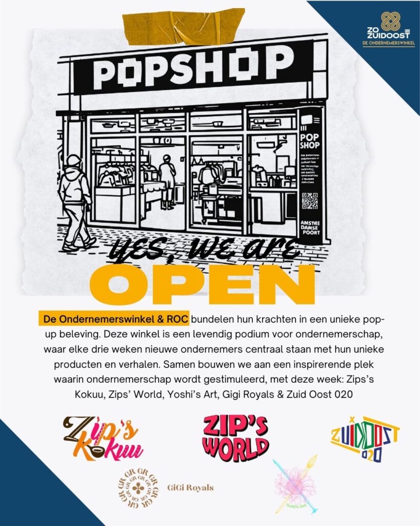 Elke drie weken staan nieuwe ondernemers centraal met hun unieke producten, verhalen en ambities. Daarmee is deze pop-up een levendig podium waar leren, ondernemen en wijkontwikkeling samenkomen, midden in Amsterdam Zuidoost.